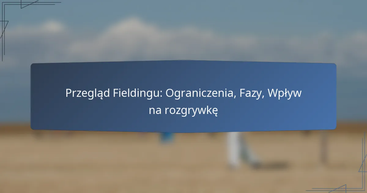 Ograniczenia w fieldingu to istotne zasady, które regulują, jak zawodnicy mogą się pozycjonować i działać podczas meczu. Zasady te zapewniają uczciwą grę i utrzymują integralność gry, określając konkretne ograniczenia dotyczące pozycjonowania zawodników, sprzętu i działań.