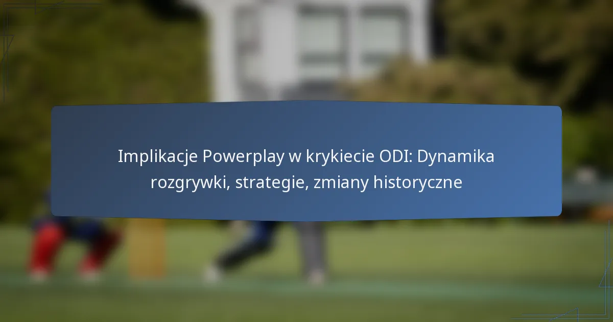 Powerplay’e to wyznaczone overy w Międzynarodowych Meczach Jednodniowych (ODI), które pozwalają drużynom maksymalizować możliwości zdobywania punktów, jednocześnie nakładając ograniczenia na drużynę w polu. Są one kluczowe dla stworzenia równowagi między batem a piłką, często prowadząc do meczów z wysokimi wynikami. Zrozumienie powerplay’ów jest istotne zarówno dla graczy, jak i kibiców, ponieważ mogą one zadecydować o wyniku meczu.